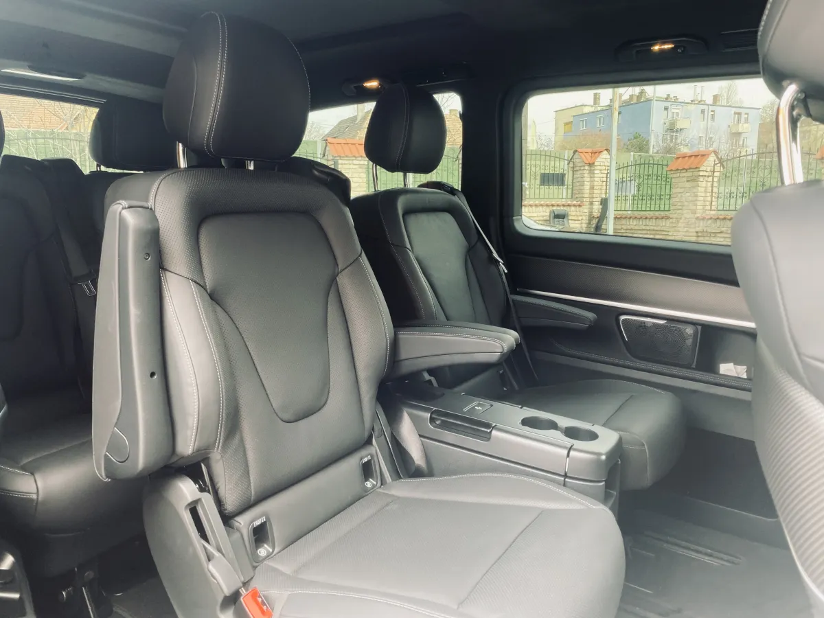 A Mercedes V-osztály egy eddig sosem létezett autó. Míg a valahai V-osztály a kisvállalkozók autójaként híresült el, az újgenerációs V-osztály már más világ. Ez valóban luxusautó, nem pedig egy prémiumos furgon. Olyan autó, ami bármely család igényeit kielégíti! Helykínálatban elsőosztályú, a műszerfal igazi prémium érzést ad. Az ülések kényelmesek, hátul gyakorlatilag bármilyen ülésrend lehetséges, összesen pedig 6-8 személyt tud befogadni. Jó a kilátás belőle, üdvös a magas vezetési pozíció, megdöbbentő, hogy a bő 5,1 méter hosszú autó milyen fordulékony, s az is, hogy mennyire jó képet ad a teljesen valós 360 fokos kamerarendszer. Az autóban 190 lóerő és a 440 Nm rejlik, ami 9,1 másodperces 100 km/órára gyorsulást biztosít.